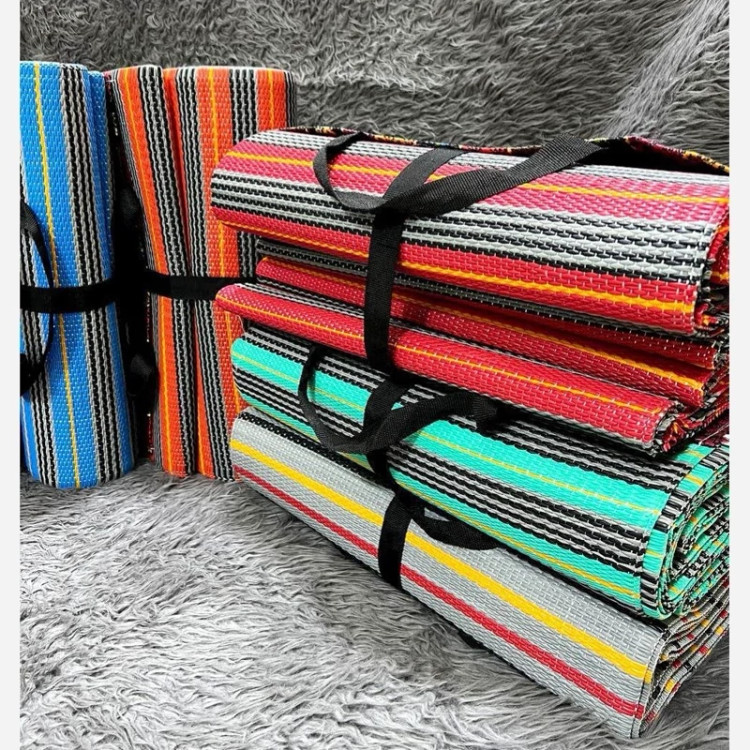 طرح حصیری این زیرانداز ظاهر سنتی و زیبایی به آن داده که برای استفاده در طبیعت و فضای باز جذاب است.