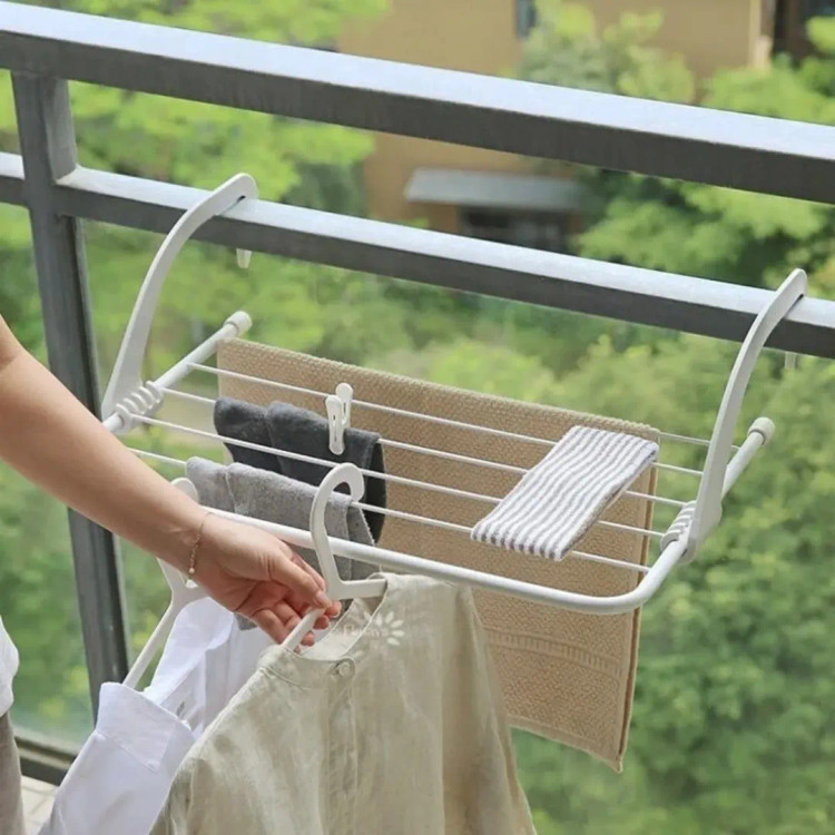 بسیار پرکاربرد ) جنس : ترکیب فلز و پلاستیک مقاوم مناسب برای آپارتمان ، خانه های ویلایی ، خوابگاه و مکان های کوچک سبک با قابلیت حمل و جابجایی آسان قابلیت نصب روی شوفاژ ، نرده ، لبه پنجره ، لبه درب و ... سهولت در نصب و استفاده دارای 5 ردیف برای لباس ابعاد حدودی : 38X51 سانتیمتر قابلیت جدا شدن بازوها از صفحه