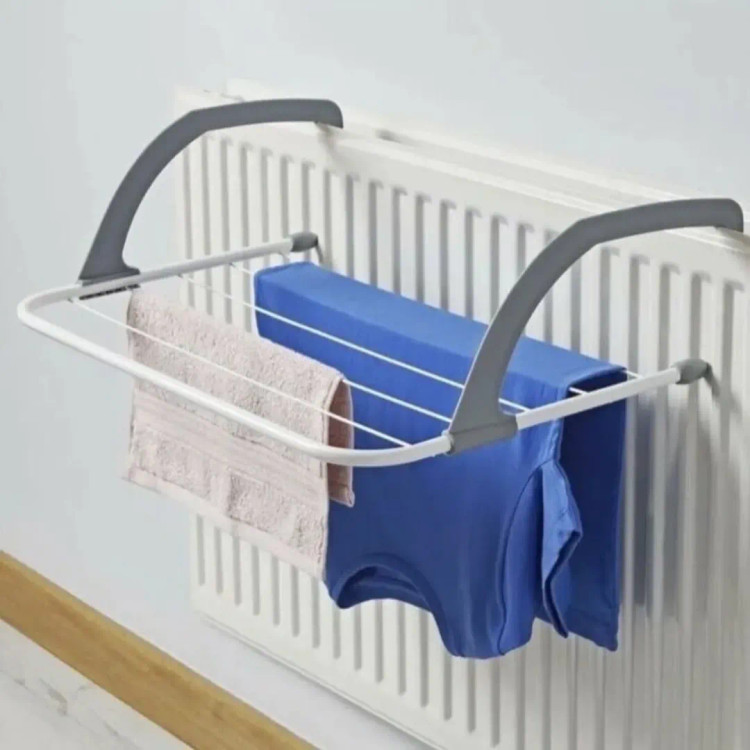 بسیار پرکاربرد ) جنس : ترکیب فلز و پلاستیک مقاوم مناسب برای آپارتمان ، خانه های ویلایی ، خوابگاه و مکان های کوچک سبک با قابلیت حمل و جابجایی آسان قابلیت نصب روی شوفاژ ، نرده ، لبه پنجره ، لبه درب و ... سهولت در نصب و استفاده دارای 5 ردیف برای لباس ابعاد حدودی : 38X51 سانتیمتر قابلیت جدا شدن بازوها از صفحه